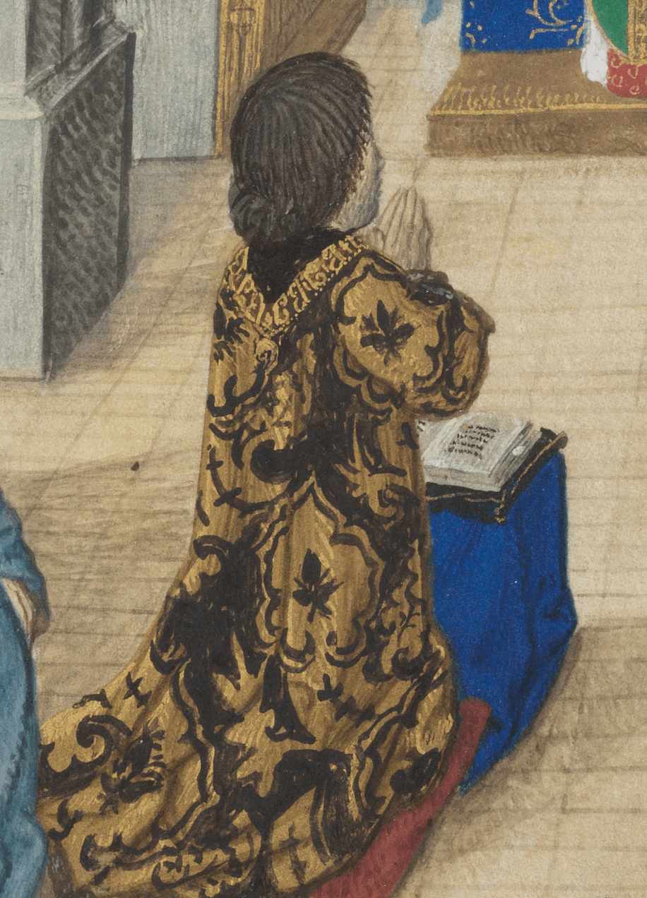 Diese kleinen Details sind von grosser Bedeutung: Guys Mitgliedschaft im Ritterorden unterstrich seinen hohen Status am burgundischen Hof. Es ist auch bezeichnend, dass Guy sich in seinem Gebetbuch als Zeuge des Martyriums des Apostels Andreas darstellen liess: Andreas war der Schutzpatron von Burgund.